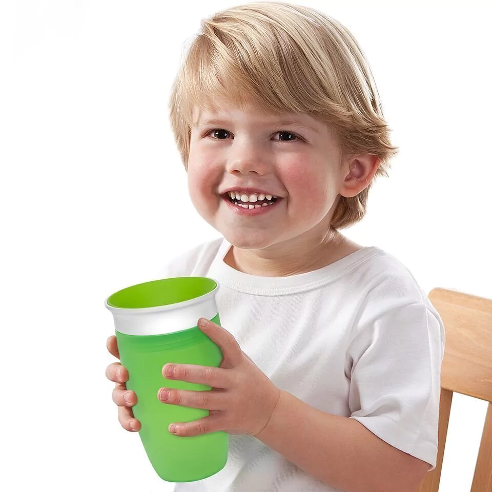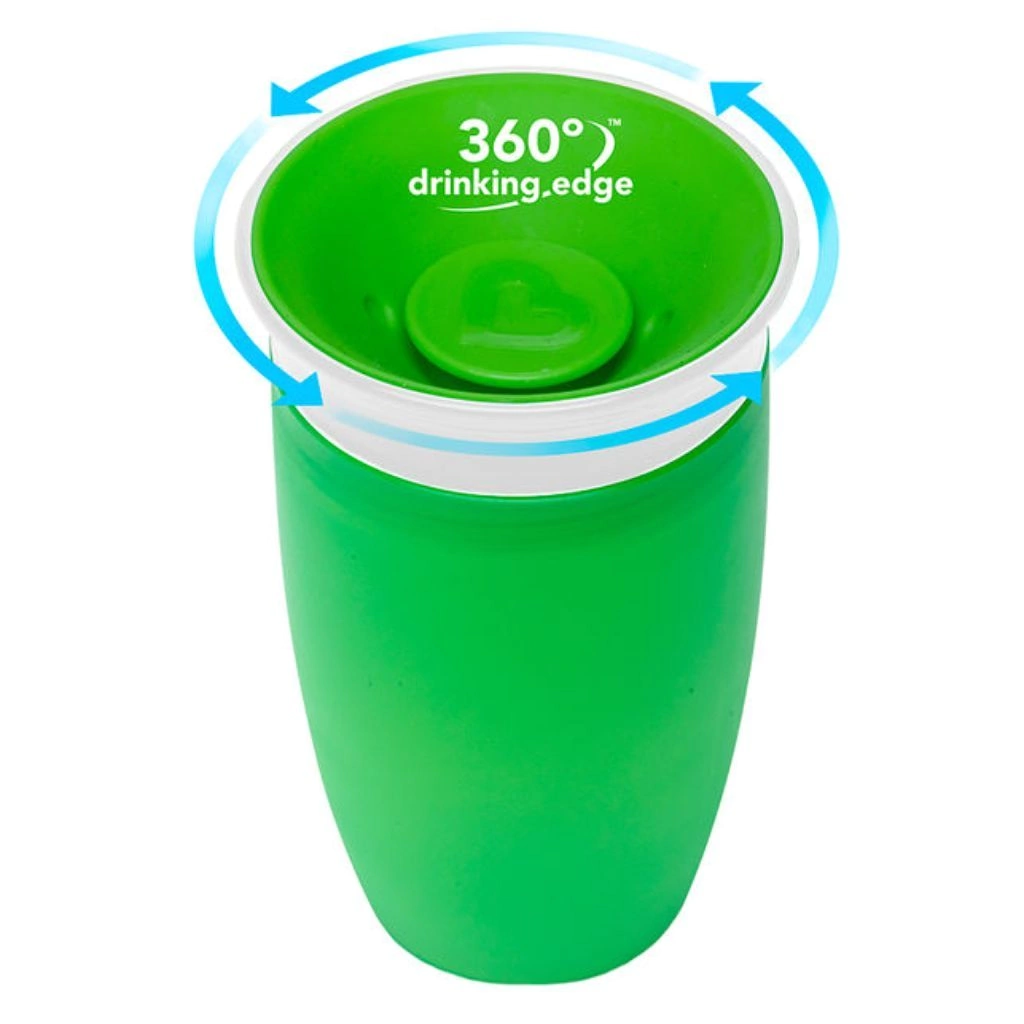 Copo Grande de Treinamento Miracle 360° da Munchkin auxilia a criança na transição para o copo, ideal para crianças que estão aprendendo a usar copinhos. Permite que a criança beba o líquido em qualquer lado do copo graças a sua borda de 360º, como um copo normal, apenas pressionando os lábios na borda do copo. Possui sistema anti-vazamento que evita bagunças e é muito fácil de limpar. Livre de BPA e ftalatos. Capacidade: 296 ml