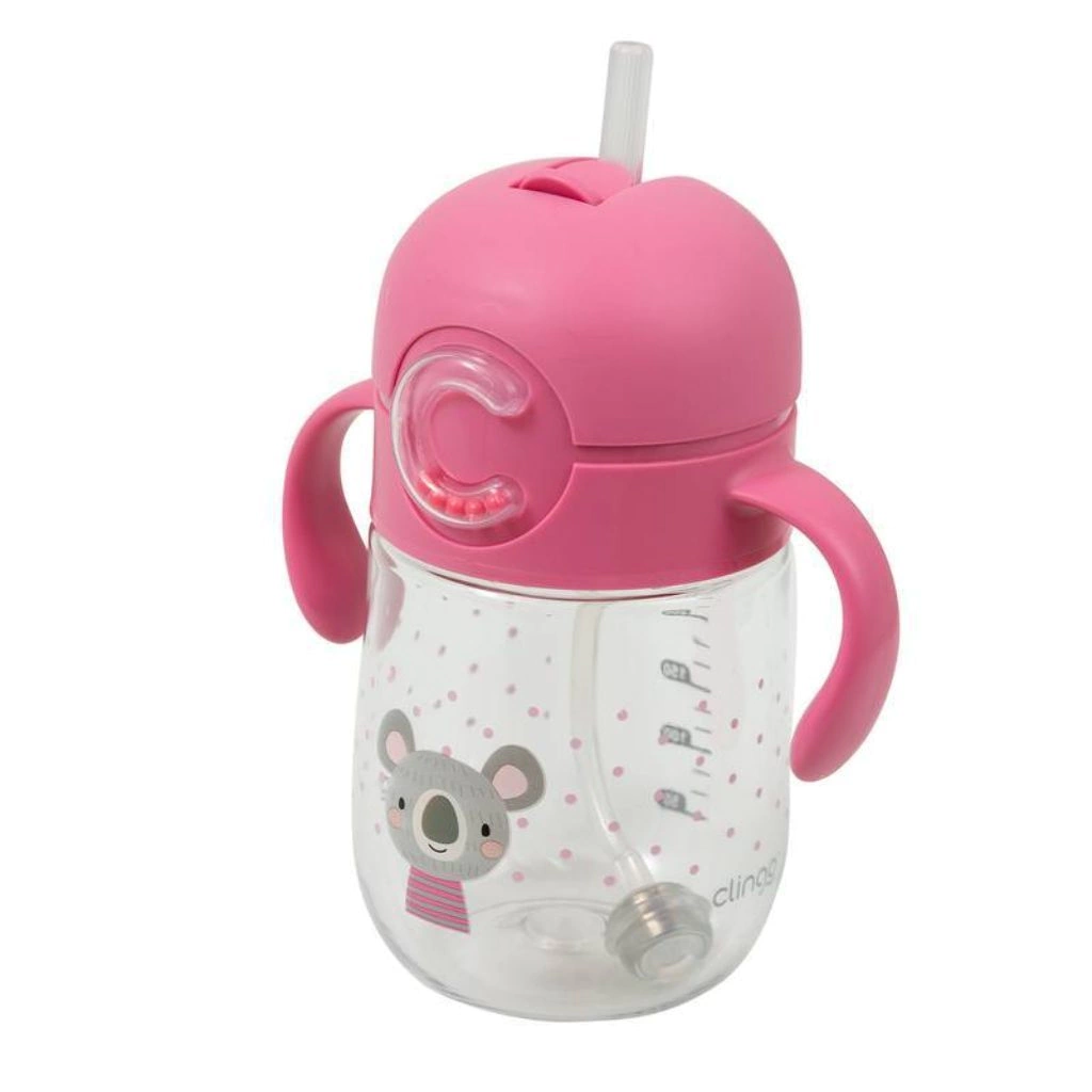 Copo de Tritan com Alça, Canudo e Pêndulo da Clingo possui canudo de silicone e válvula que acompanha o movimento do liquido, evitando a ingestão de ar. Possibilitando que a criança tome o liquido em qualquer posição, inclusive deitada, sem o risco de engolir ar. O bico macio de silicone auxilia a criança durante a sucção, possui alças anatômicas que permitem que a criança tome o líquido sozinho, além de ser fácil de segurar e usar. Canudo retrátil de silicone macio. Ótimo para levar em passeios. Possui tampa que protege o bico de sujeiras. Produto Livre de BPA e ftalatos. Com capacidade de 270 ml, possui marcador de níveis, que facilita a visualização.