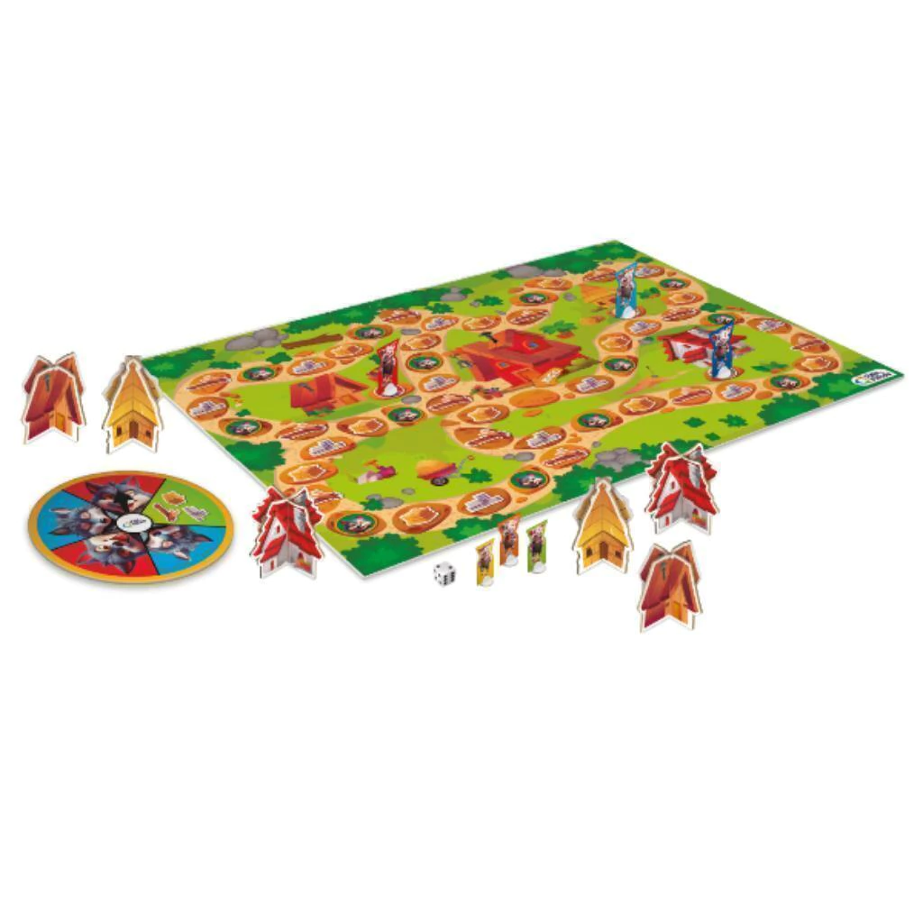 Jogo Construindo com Os Três Porquinhos da Pais & Filhos - ajude a construir as casas dos porquinhos antes que o lobo assopre tudo pelos ares. É um jogo repleto de disputas e muito divertido. Objetivo do jogo: ser o primeiro a montar três casinhas e chegar na casa do seu porquinho. Um divertido jogo que pode ter até 6 pessoas.
