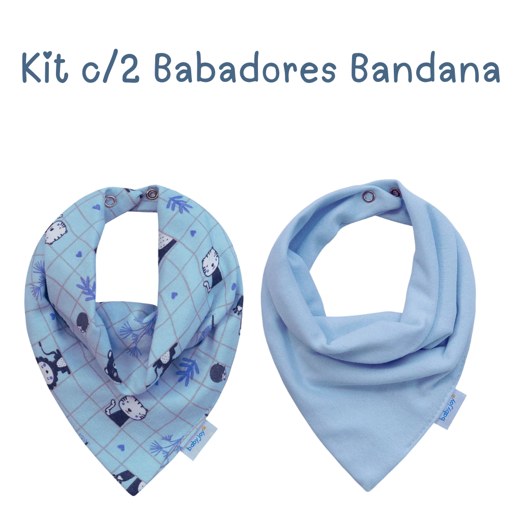 Kit c/2 Babador Bandana Impermeável Animais Azul Baby Joy
