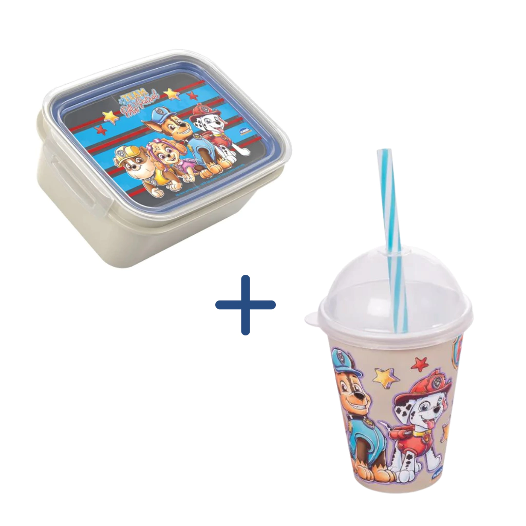Kit composto por: Copo com canudo e 1 porta lanche Patrulha PlasUtil.