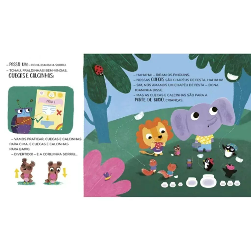 Livro A Escola da Dona Joaninha Ciranda Cultural - Um livro ideal para o desfralde! É hora de treinar no peniquinho, e a Dona Joaninha está aqui para te ensinar! Junte-se aos animais dessa classe divertida que dize TCHAU para suas FRALDINHAS e passa a ADORAR seus PENIQUINHOS! Um livro perfeito para compartilhar com os pequenos quando eles estiverem aprendendo a usar o penico.