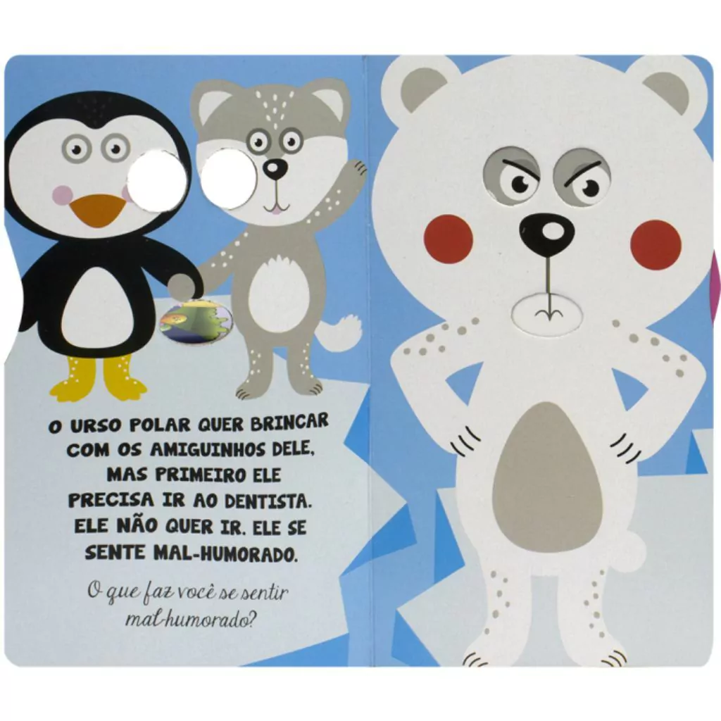 Livro Interativo sobre EMOÇÕES da Coleção Gire o Disco Todolivro - Hoje o urso polar precisa ir ao dentista. É um dia com muitas emoções diferentes. Gire o disco para descobrir como o urso polar se sente. Você consegue demonstrar os seus sentimentos também??? As expressões faciais interativas contribuem para aumentar a compreensão infantil das emoções dos outros. Habilidades desenvolvidas: habilidades de leitura, habilidades cognitivas, emoções e sentimentos. Indicado a partir de 3 anos+