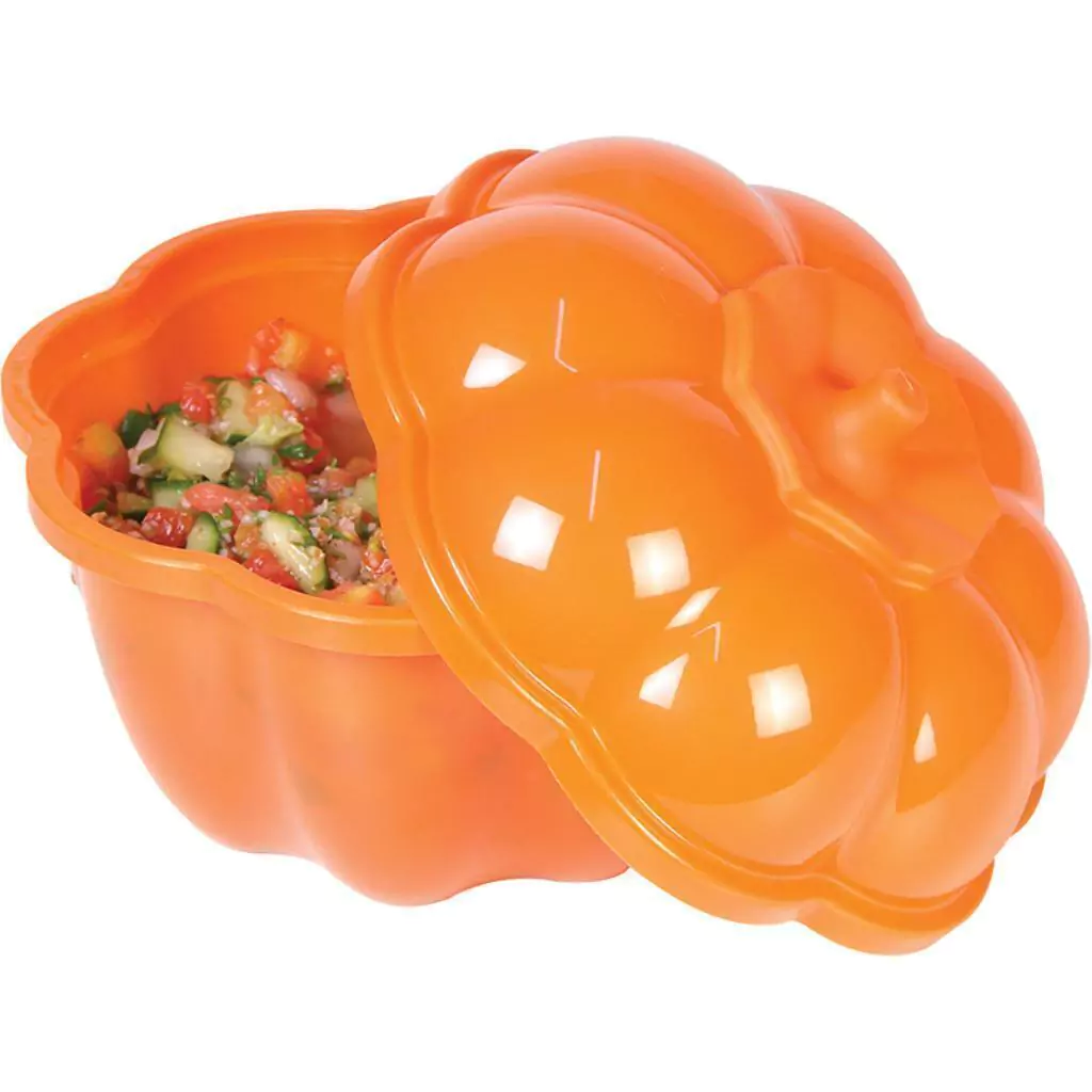 Potinho porta lanche Plasútil - O halloween ou dia das bruxas é uma data popularmente americana que ganhou o calendário brasileiro. A famosa expressão - gostosuras ou travessuras - anima as turmas que amam festas temáticas. O porta metade em formato de abóbora possui 310 ml e tampa acoplada (ou seja, base a tampa são fixas). Em tom laranja vibrante, o produto é ideal para compor mesas temáticas e deixar a decoração mais produzida.O potinho com formato de abóbora pode ser usado para guardar objetos pequenos, guloseimas. Pode ser utilizado de várias maneiras: para ser levada para escola, para aquele lanchinho no trabalho. Também é uma ótima opção como lembrancinha.