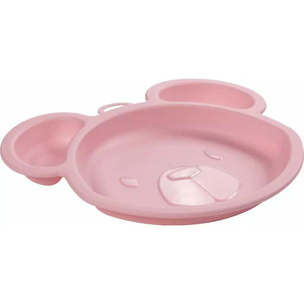 Prato com divisórias - Com design bonito e formato lúdico de ursinho, possui três divisórias que permitem servir alimentos diferentes sem misturar, praticidade na hora da refeição. Prato perfeito para servir as primeiras papinhas, sopinhas, frutas e o lanchinho da criança. O formato do prato é cuidadosamente projetado, criando uma experiência visualmente estimulante para os pequenos. Além disso, esse formato especial causa uma divisória no prato, permitindo separar os alimentos de maneira divertida e organizada. Dimensão do prato: 20 x 15 x 2cm profundidade